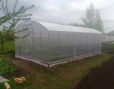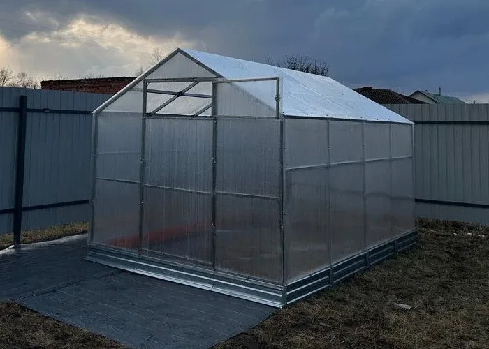 «Покупал теплицу в конце 24 года, собрал быстро, карбонат 4 мм, думал тонковат, но зима 2026 года показала, что теплица и карбонат выдержали великолепно, ни намека на прогиб, каркаса и разрыв карбоната, карбонат провис но держался, рекомендую эти теплицы.»